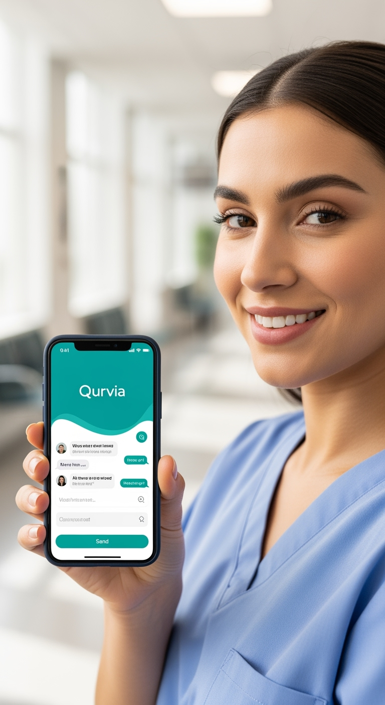 Qurvia works on web browsers, phones, tablets, and desktop computers. Access your secure AI assistant anywhere you practice.